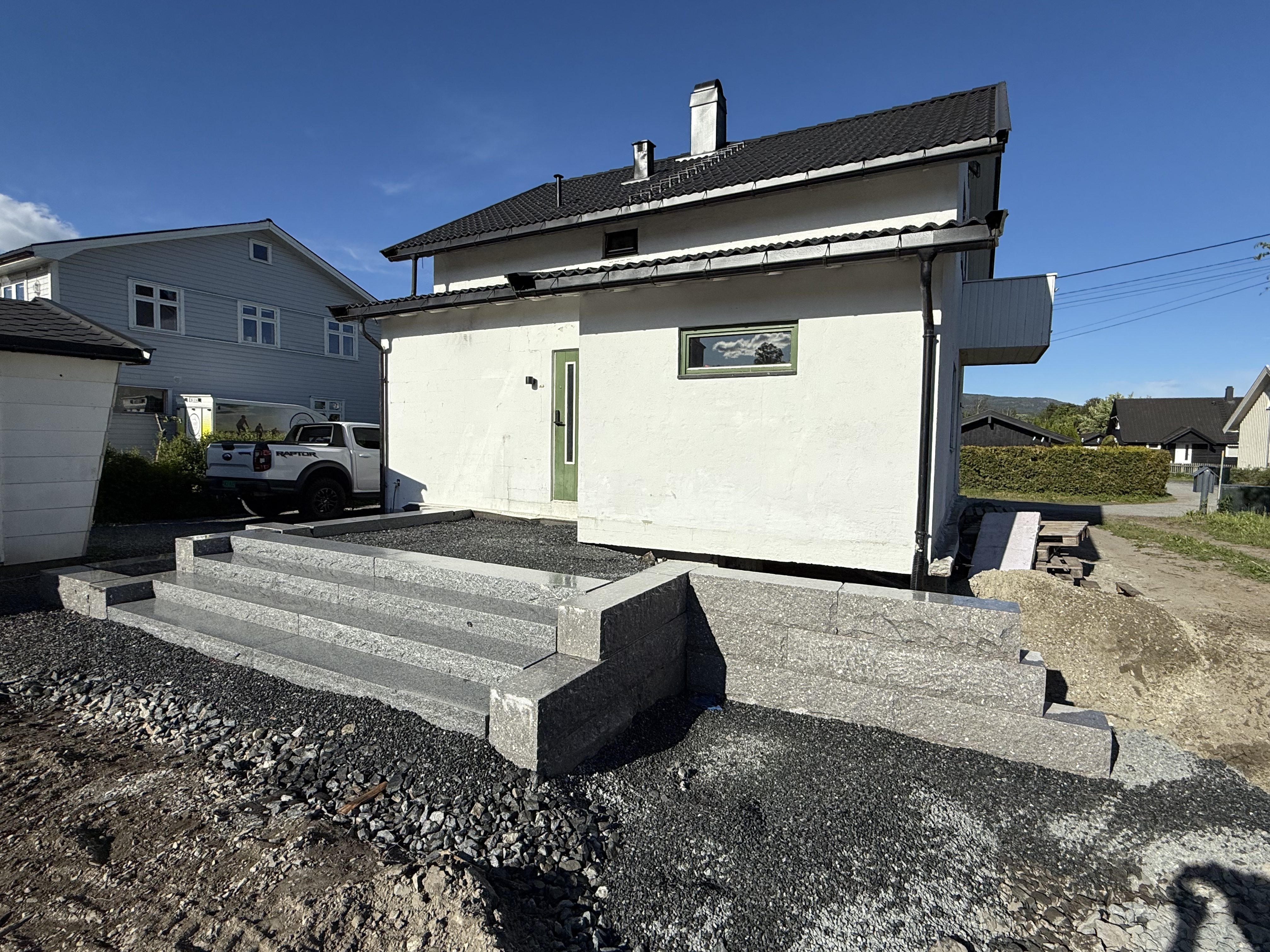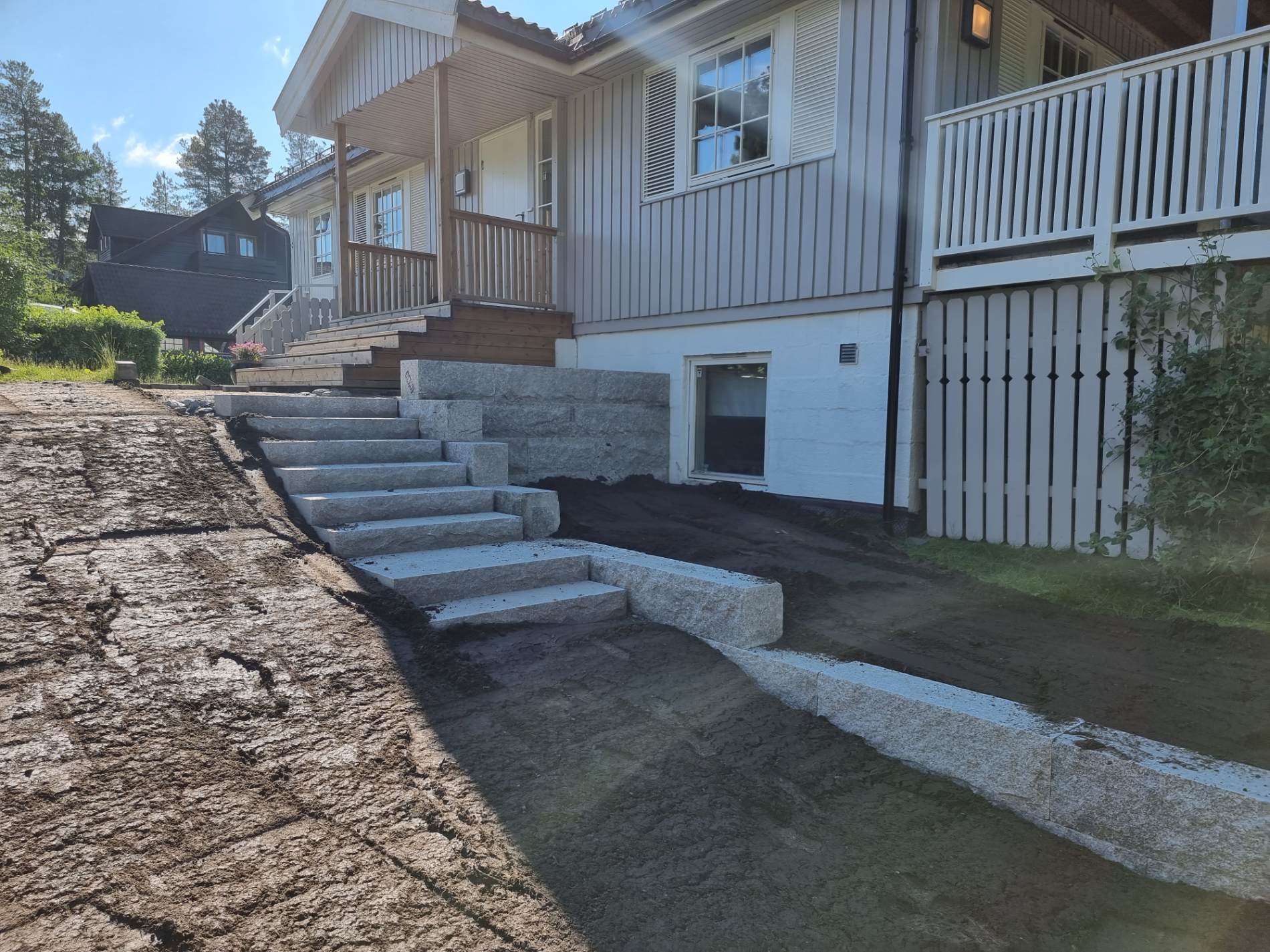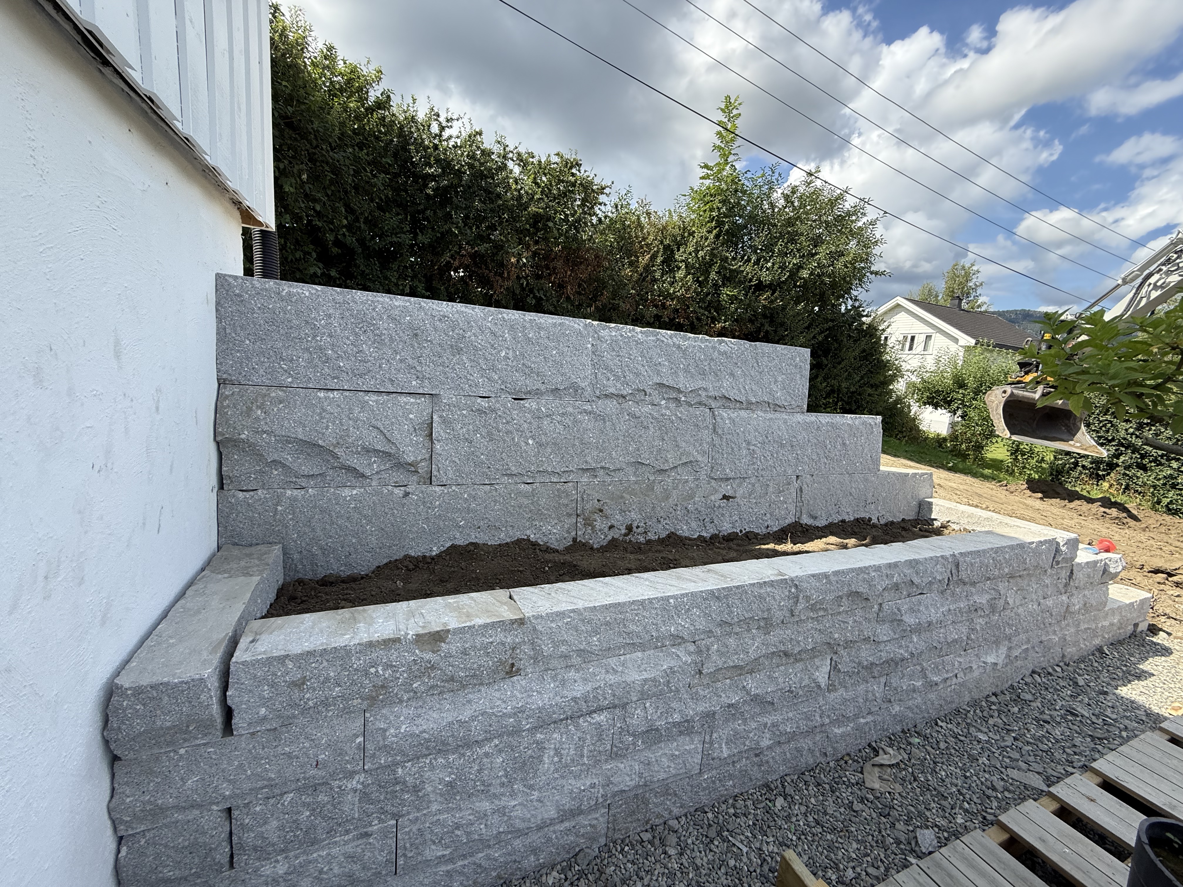 Et funksjonelt uteområde starter med riktig terreng. Vi jobber med planering, høydejustering og grunnarbeid, og bygger støttemurer i alle materialer, samt etablerer plattinger og underlag for gress og grus.